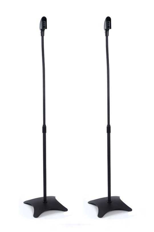 Kvalitní podlahové stojany na reproduktory a reprobedny. Univerzální úchyt na repro. Originální dizajn je ideální do obývacích pokojů, dětských pokojů, nebo pracoven a heren. Díky výškovému polohování si reproduktory snadno nastavíte do potřebné výšky. Vedení kabeláže je skryté vnitřkem stojanu. Konstrukce z masivní oceli tvoří pevný rám, který zajišťuje stabilitu při používání a speciálně přidaná základna brání převrácení. Podstavce mají pěkný dizajn a jsou vhodné na podlahy všech typů. V balení které obsahuje 2ks stojanů na repro. Barva černá.