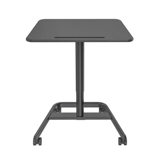 Velmi pěkný mobilní stolek na notebooky, laptopy, tablety nebo iPad. Stolek je výškově nastavitelný, a díky vztlakové pružině se rychle přizpůsobí vašim potřebám. Stojan umožňuje práci v sedě i ve stoje. Je vybaven pojezdovým kolečky s brzdou, díky kterým jej můžete umístit takřka kamkoliv. Stolek můžete využít i jako pracovní stanici, prodejní pultík, podstavu na projektory, taktéž na prezentace nebo výstavy. Stolek má vynikající stabilitu a špičkovou poctivou konstrukci s nosností až 10 kg. Velikost pracovní desky je 500 x 710mm, základna má rozměry 515 x 685 mm.